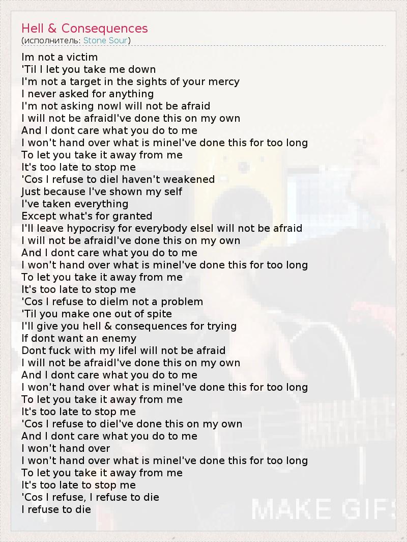 А как ты думаешь, о чем песня "Hell & Consequences" ?