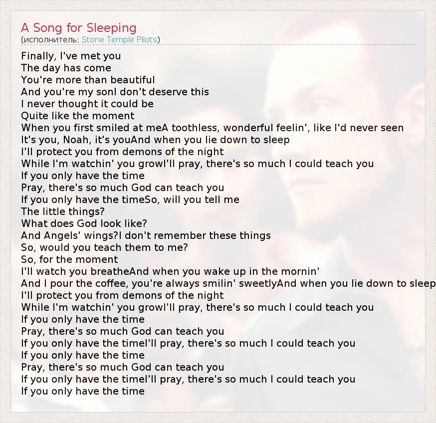 А как ты думаешь, о чем песня "A Song for Sleeping" ?