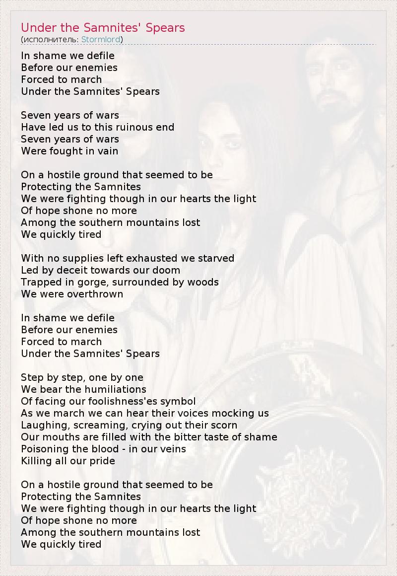 А как ты думаешь, о чем песня "Under the Samnites' Spears" ?