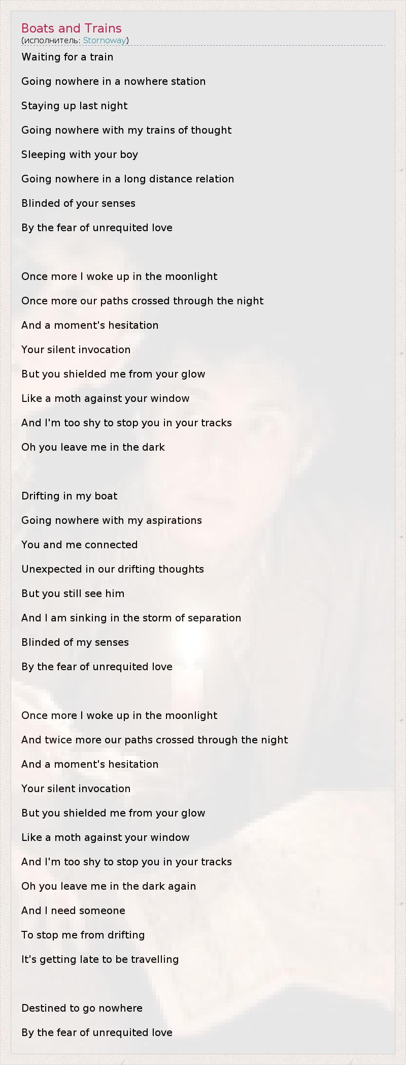 А как ты думаешь, о чем песня "Boats and Trains" ?