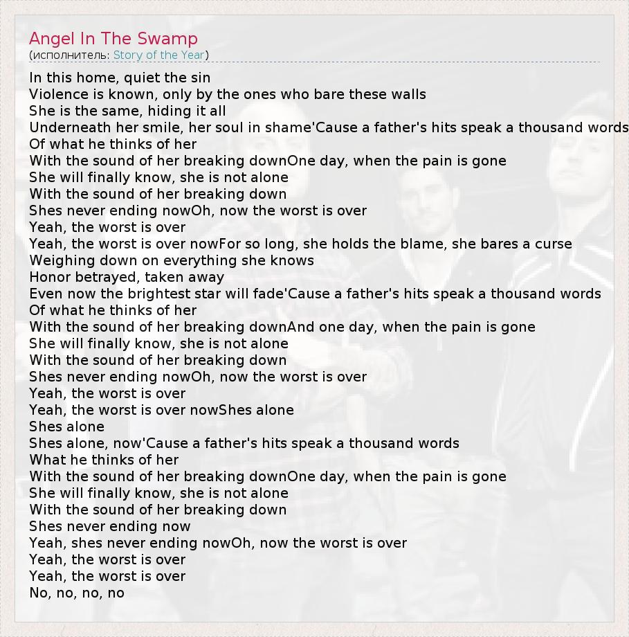 А как ты думаешь, о чем песня "Angel In The Swamp" ?