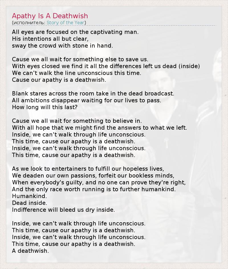 А как ты думаешь, о чем песня "Apathy Is A Deathwish" ?