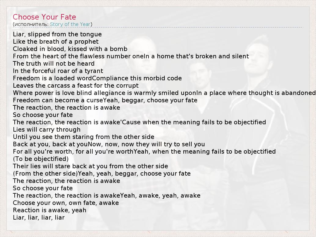 А как ты думаешь, о чем песня "Choose Your Fate" ?