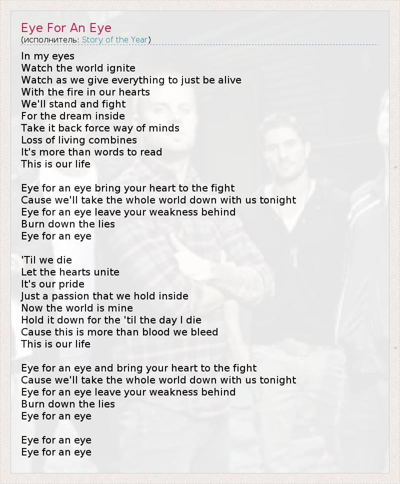 А как ты думаешь, о чем песня "Eye For An Eye" ?