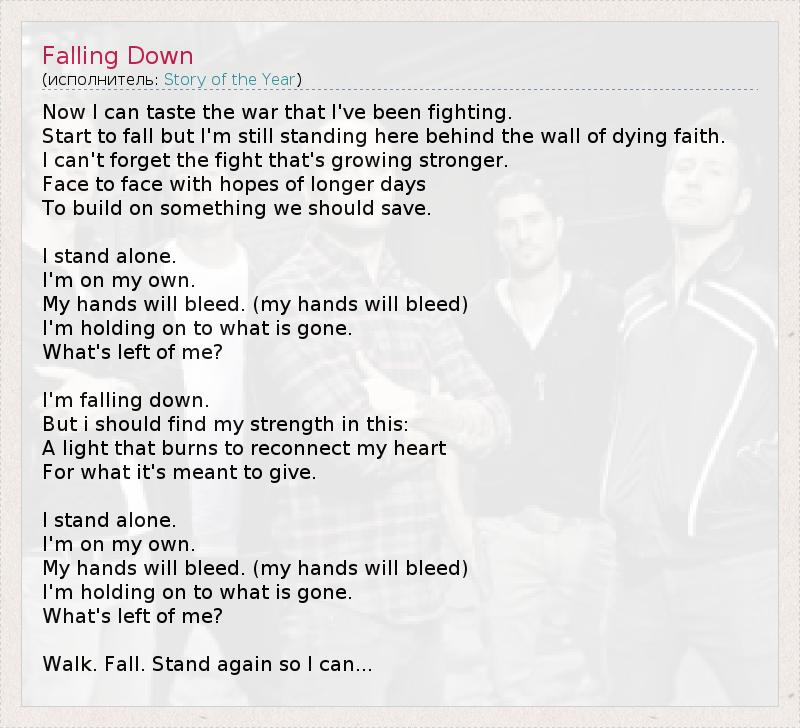 Start to fall but I'm still standing here behind the wall of dying faith.