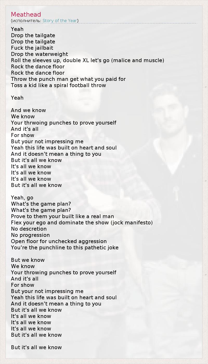 Это интересно:История группы Story of the Year берет свое начало в конце 90-х годов в городке Сент-Луис штата Миссури, который также является родиной всех ее участников: "Мы все выросли в районах среднего класса", говорят участники группы: "неплохих и непримечательных, но жить там было весело."Совместную музыкальную деятельность парни начали где-то лет десять назад.Их всегда забавляло общаться... продолжение
