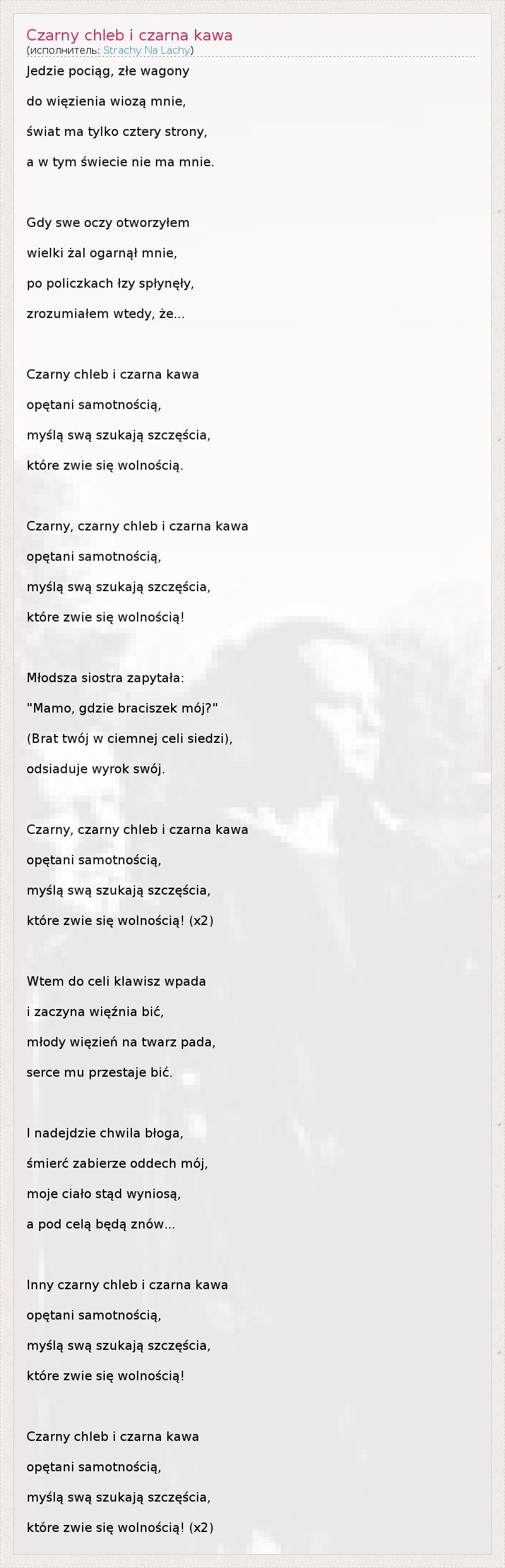 ГлавнаяИсполнителиStrachy Na LachyCzarny chleb i czarna kawa