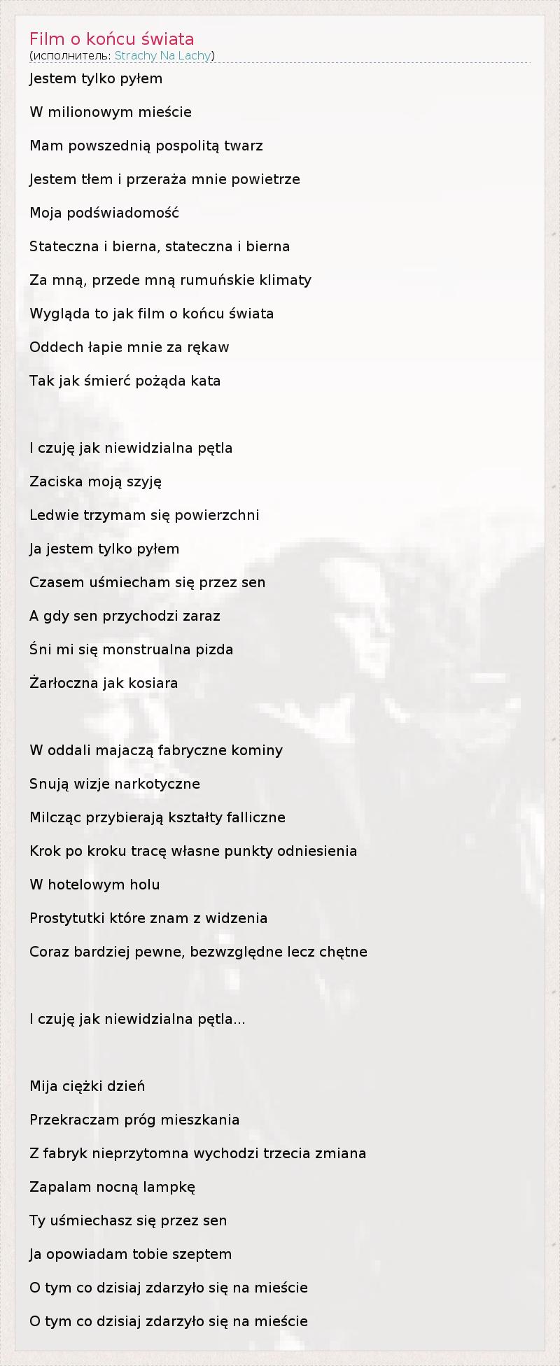 А как ты думаешь, о чем песня "Film o końcu świata" ?