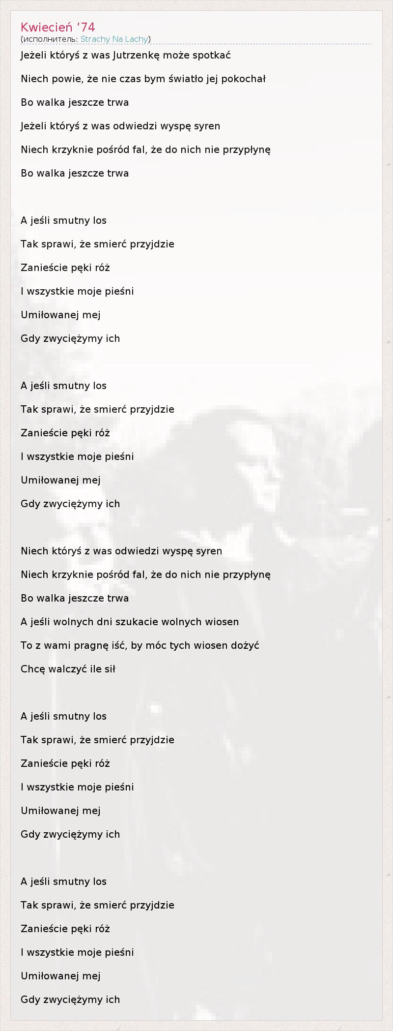 А как ты думаешь, о чем песня "Kwiecień ’74" ?