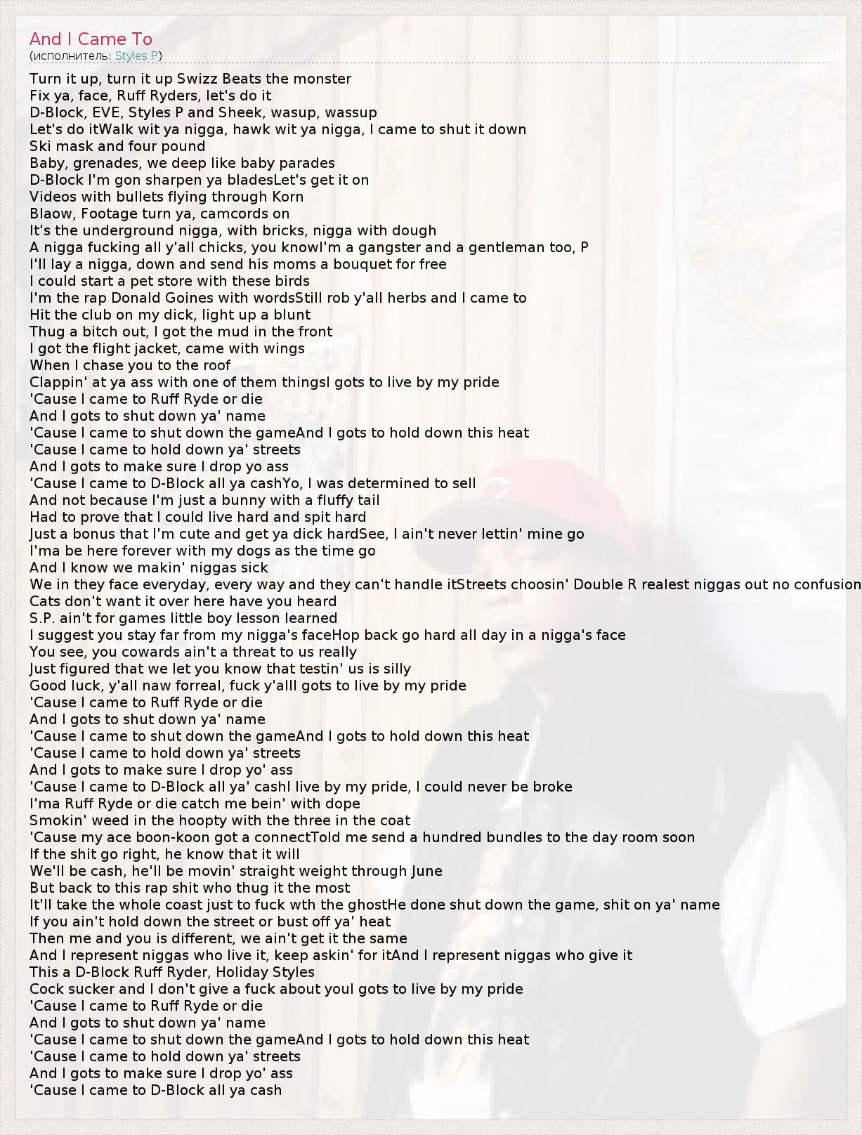 Это интересно:Стайлс Пи (англ. Styles P) — известный американский рэппер, настоящее имя Дэвид Стайлс. Родился 28 ноября 1974 г. в Квинсе, в семье американца и африканки. Стайлс Пи является членом хип-хоп группы D-Block (ранее известная как The L.O.X.), в которую помимо него входят Джейдэкисс (англ. Jadakiss) и Шик Лауч (англ. Sheek Louch). Песни Стайлса Пи известны их откровенностью и громкими заявлениями... продолжение