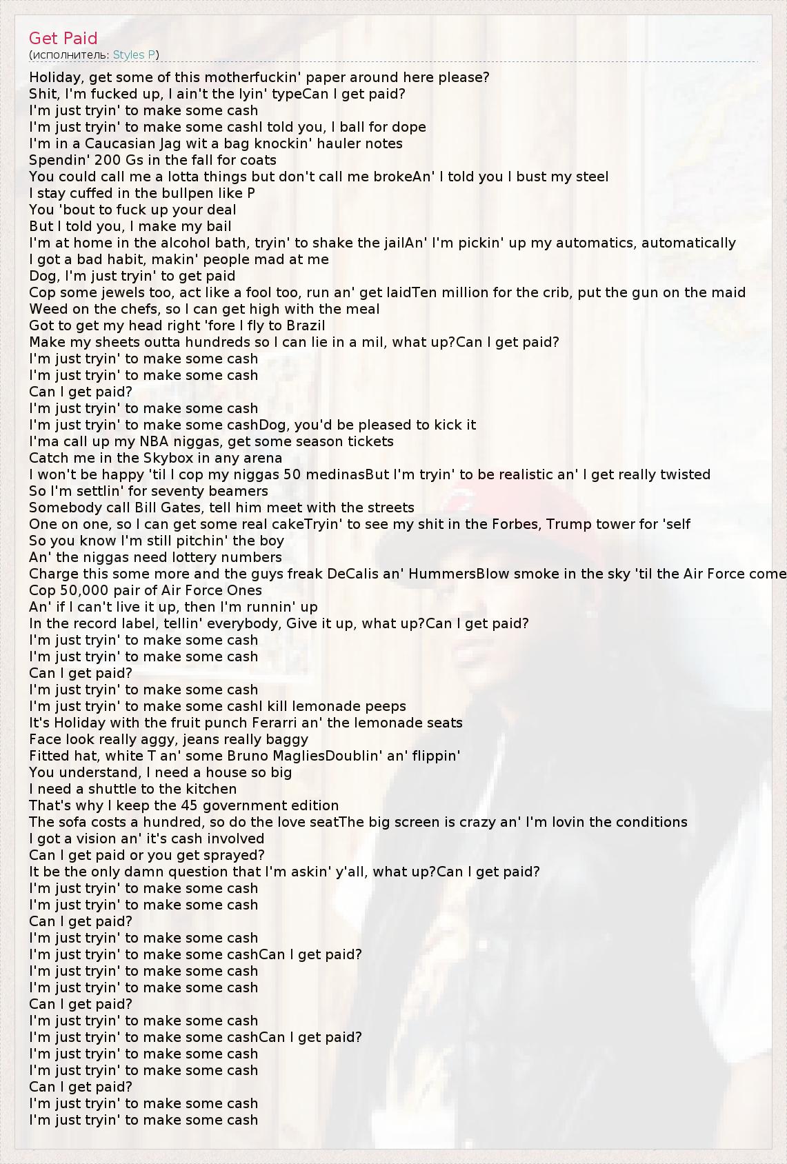 It be the only damn question that I'm askin' y'all, what up?Can I get paid?