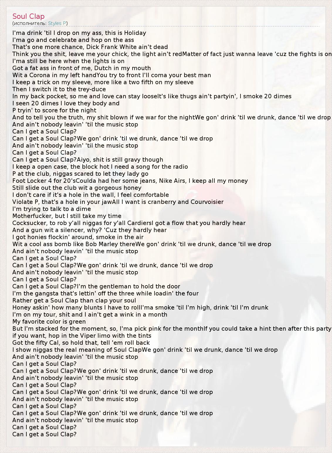 I show niggas the real meaning of Soul ClapWe gon' drink 'til we drunk, dance 'til we drop