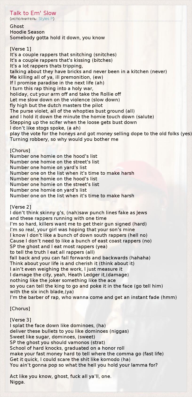 А как ты думаешь, о чем песня "Talk to Em' Slow" ?