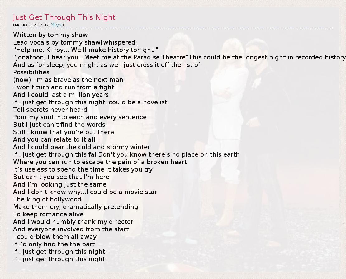 А как ты думаешь, о чем песня "Just Get Through This Night" ?