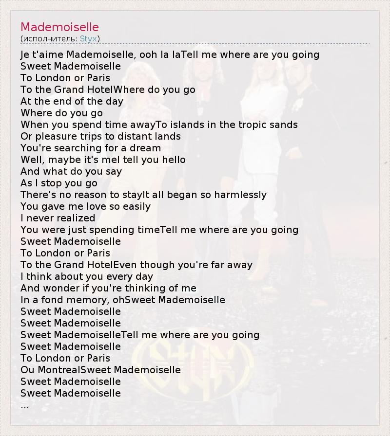 А как ты думаешь, о чем песня "Mademoiselle" ?