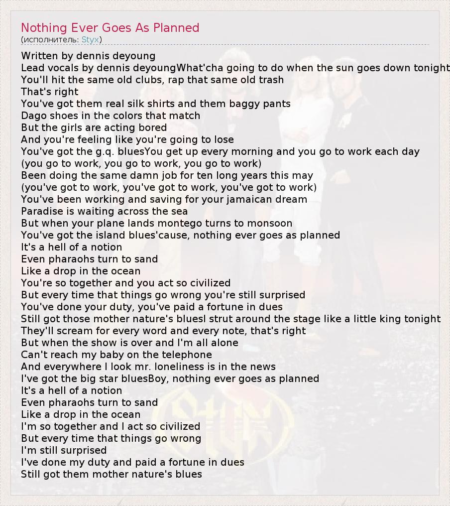 ГлавнаяИсполнителиStyxNothing Ever Goes As Planned