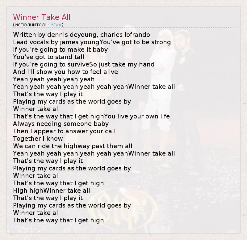 Yeah yeah yeah yeah yeah yeah yeahWinner take all