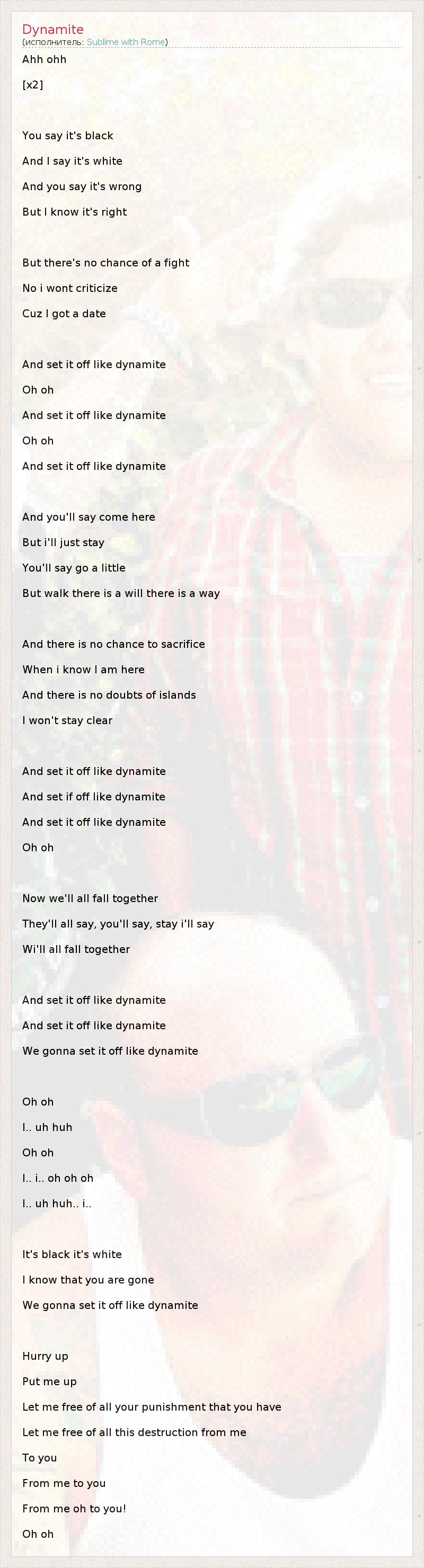 Это интересно:Sublime with Rome is a musical collaboration between Eric Wilson and Bud Gaugh, formerly of the band Sublime, and singer and guitarist Rome Ramirez. The group chiefly performs songs by Sublime, which was fronted by Bradley Nowell until his death in 1996.Ramirez began performing with Gaugh and Wilson in 2009, where they played under the name "Sublime", until Nowell's estate issued a legal challenge to the use of the trademarked name for a venture not including Nowell. As a result, they changed their name to "Sublime with Rome" in January 2010. The group played at the 2009 Smokeout Festival and embarked on their first tour in 2010, and released their debut album, Yours... продолжение