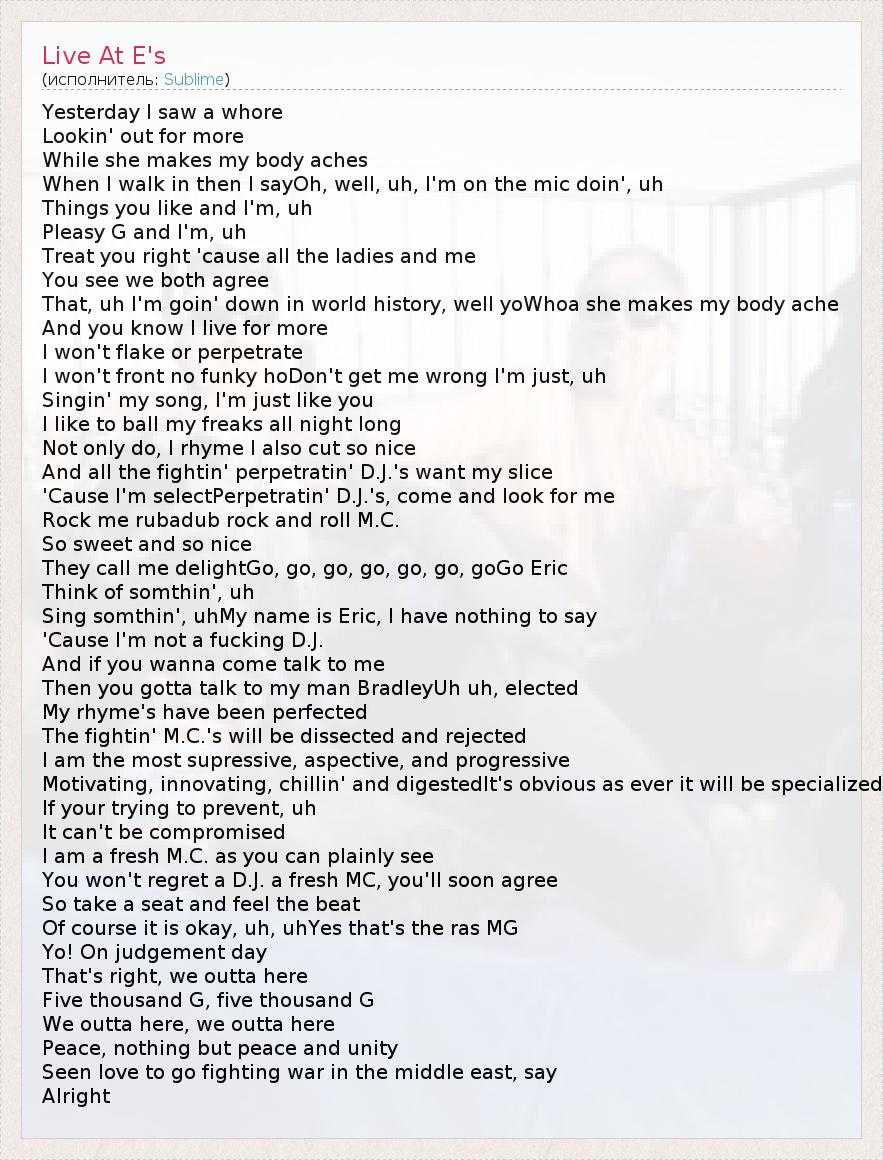 Это интересно:Sublime в переводе на русский значит "возвышенный, величественный". Хотя первоначально группа под таким названием ничуть не оправдывала его. Эта банда была, по высказываниям очевидцев, "панками ниже среднего уровня, которых были рады видеть на вечеринках". Однако, начиная с 1988, группа стремительно завоевывала популярность, став музыкальным ЯВЛЕНИЕМ. Смесь dance-hall и rock-steady с агрессивными... продолжение