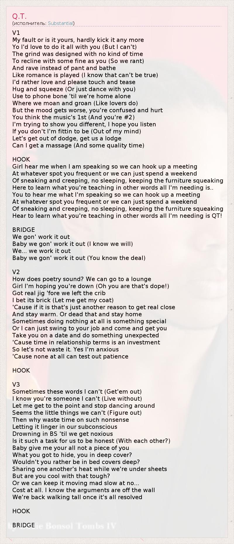 А как ты думаешь, о чем песня "Q.T." ?
