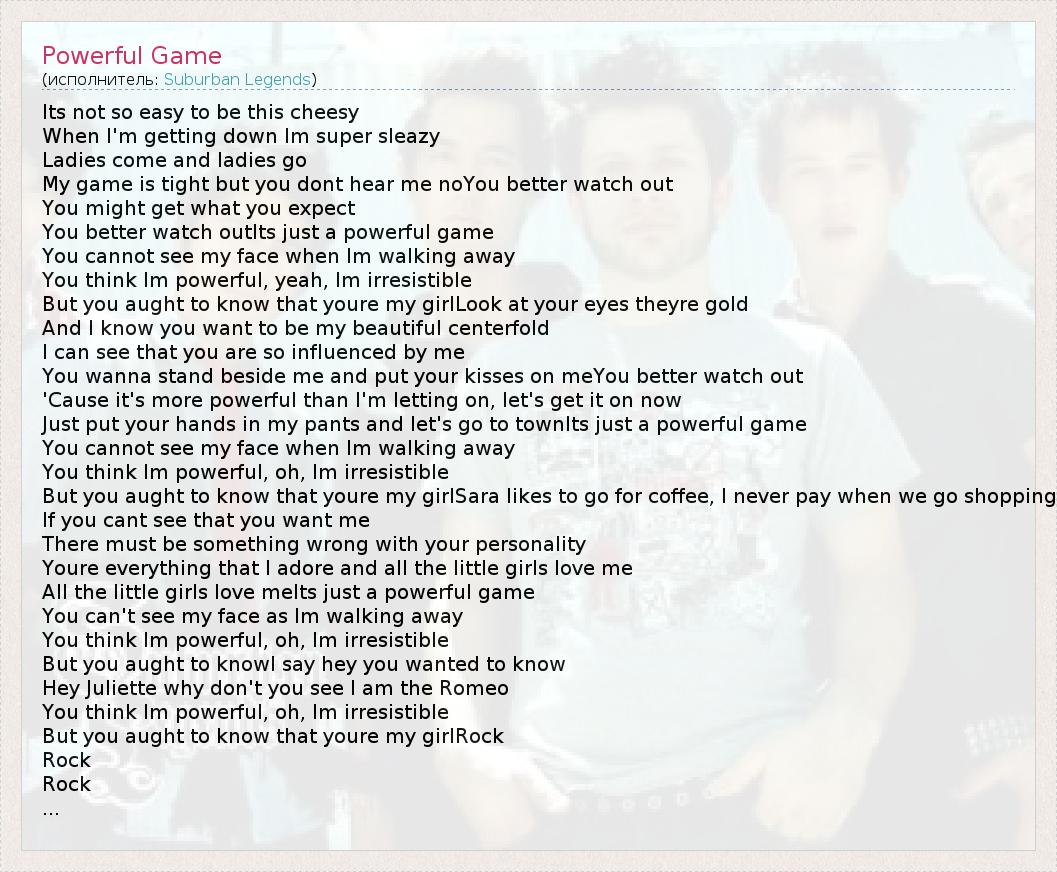 А как ты думаешь, о чем песня "Powerful Game" ?