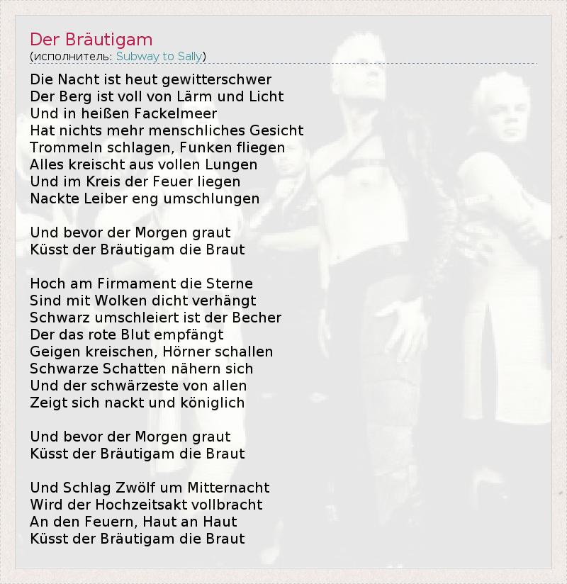 А как ты думаешь, о чем песня "Der Bräutigam" ?