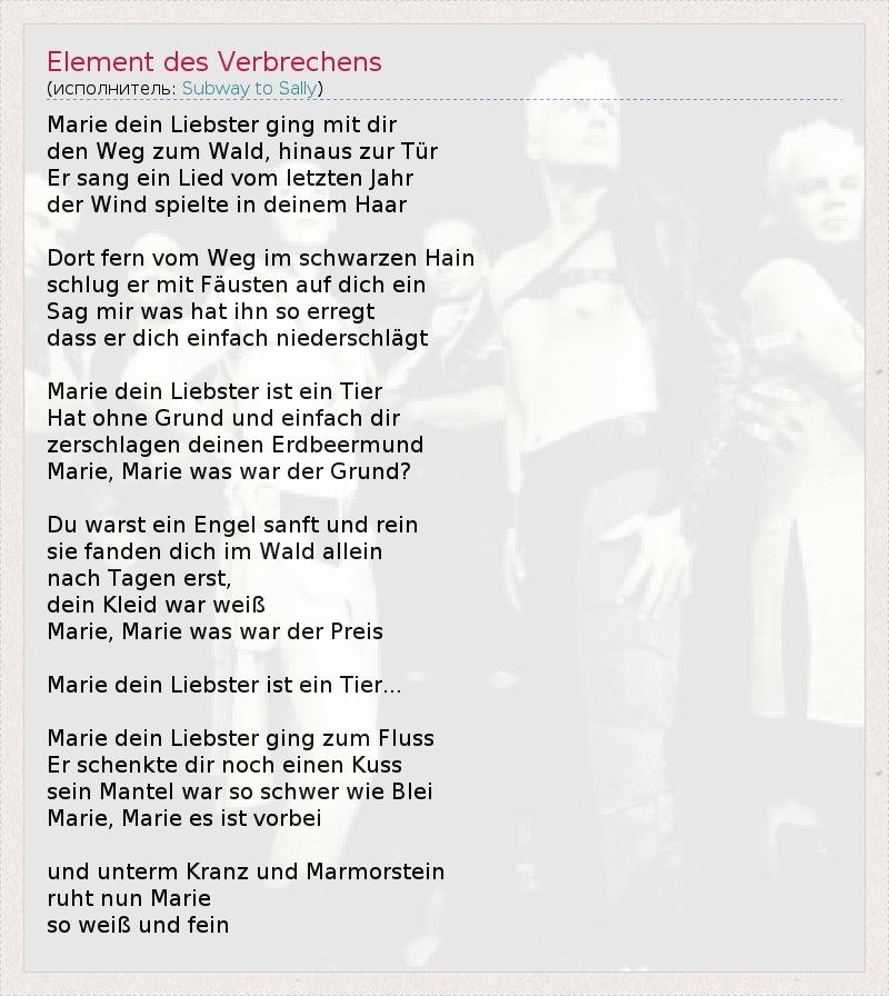 А как ты думаешь, о чем песня "Element des Verbrechens" ?