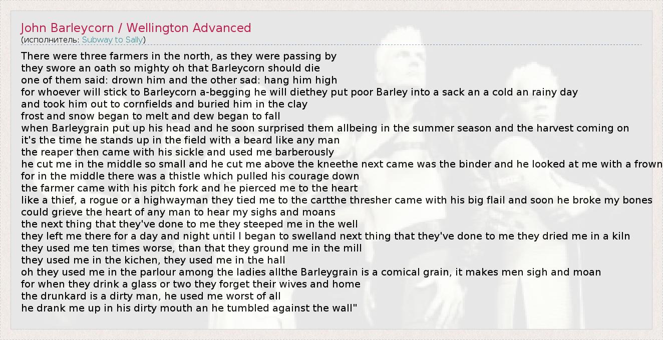 А как ты думаешь, о чем песня "John Barleycorn / Wellington Advanced" ?