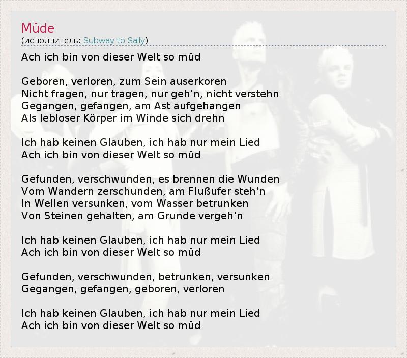 Это интересно:История “Потсдамской семерки” началась в далеком 1990 году, когда музыканты из группы Bodenski Beat, игравшей допотопный рок-н-ролл и не имевшей ни успеха, ни популярности, за одну ночь решили круто изменить ситуацию: найти пару фолк-музыкантов и дать группе новое имя Subway to Sally. В ее составе тогда были Simon и Bodenski (знавшие друг друга с детства и начинавшие свою музыкальную карьеру в школьном бэнде... продолжение