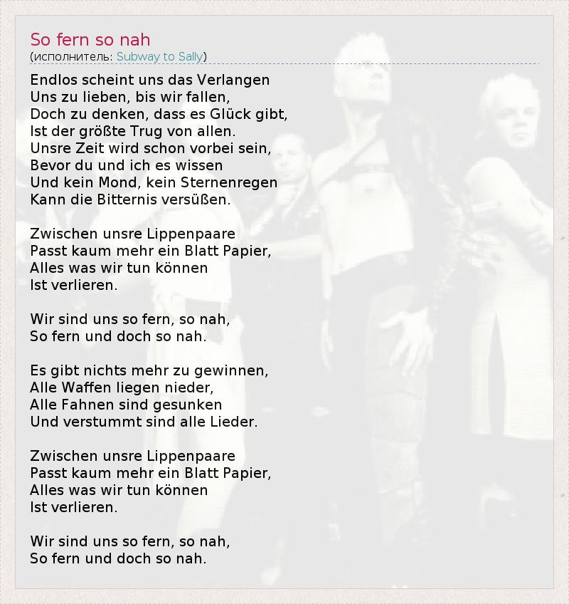 А как ты думаешь, о чем песня "So fern so nah" ?