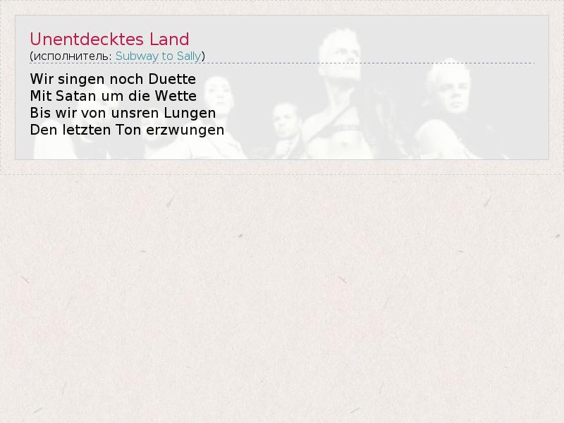 А как ты думаешь, о чем песня "Unentdecktes Land" ?