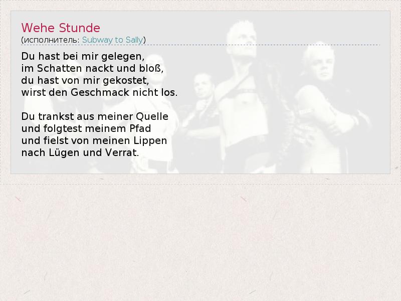А как ты думаешь, о чем песня "Wehe Stunde" ?