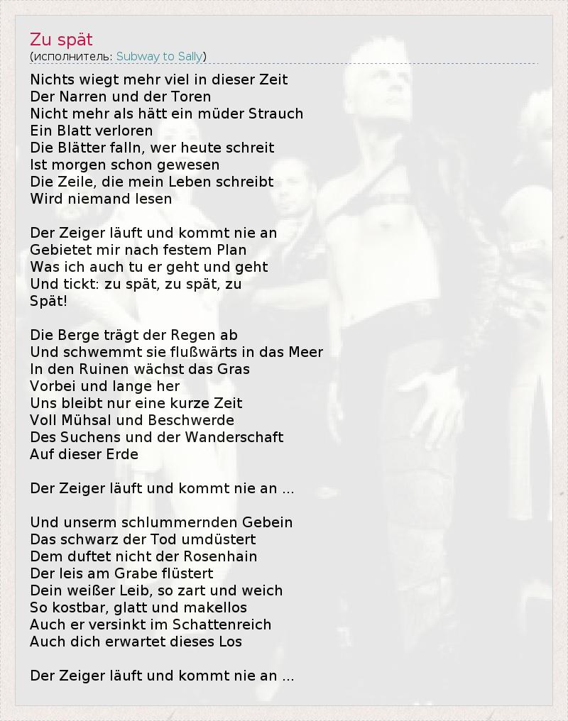 А как ты думаешь, о чем песня "Zu spät" ?
