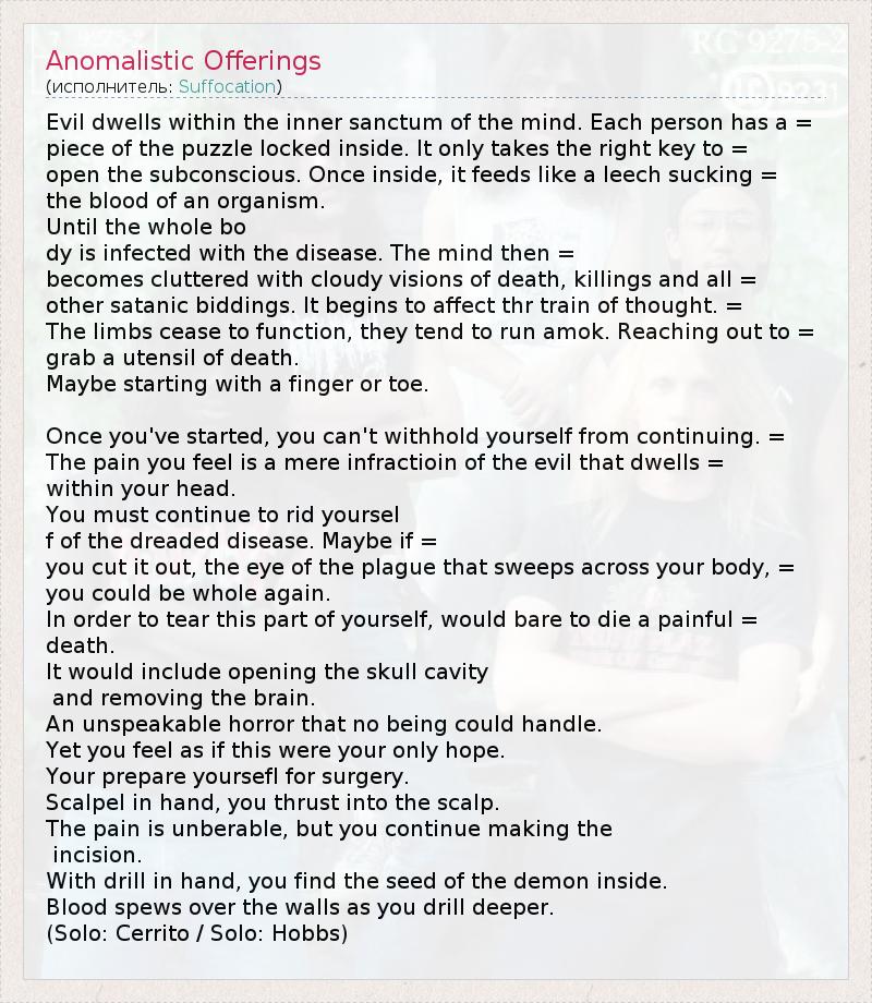 А как ты думаешь, о чем песня "Anomalistic Offerings" ?