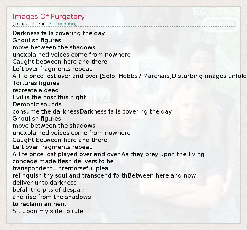 А как ты думаешь, о чем песня "Images Of Purgatory" ?