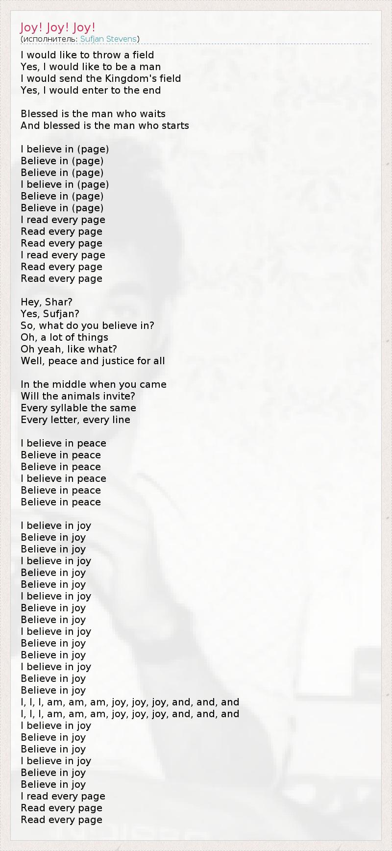 А как ты думаешь, о чем песня "Joy! Joy! Joy!" ?