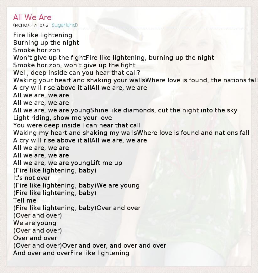 А как ты думаешь, о чем песня "All We Are" ?