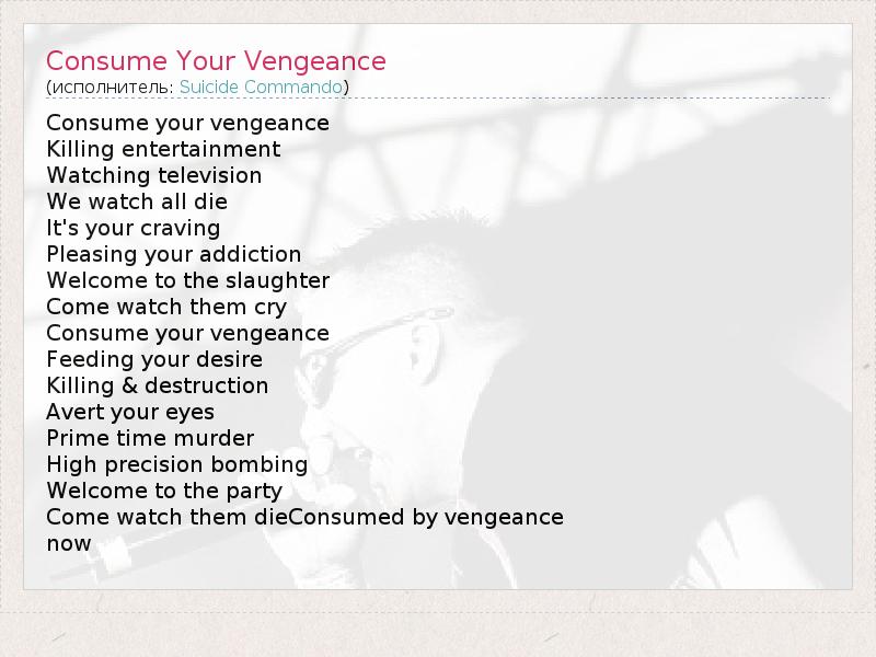 А как ты думаешь, о чем песня "Consume Your Vengeance" ?