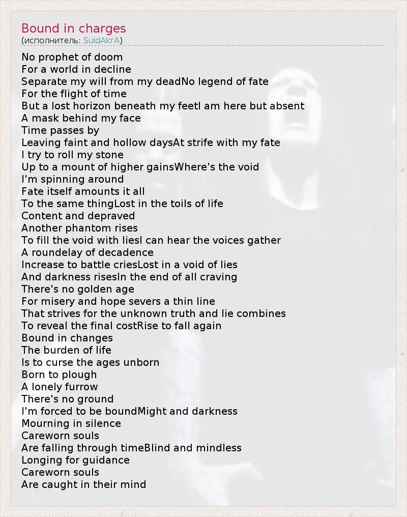 А как ты думаешь, о чем песня "Bound in charges" ?