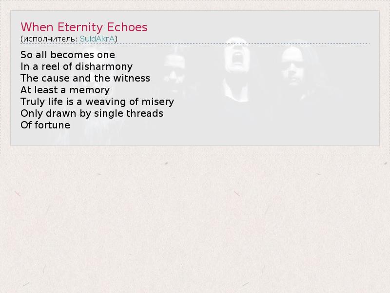А как ты думаешь, о чем песня "When Eternity Echoes" ?