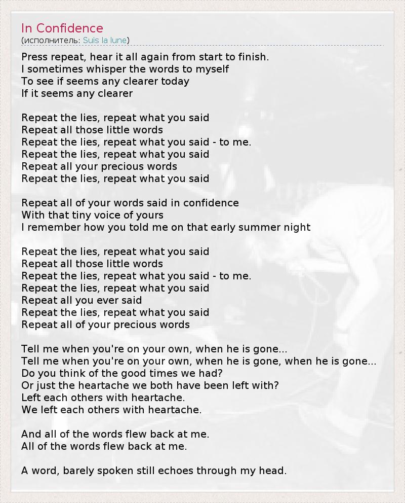 Repeat all of your words said in confidence