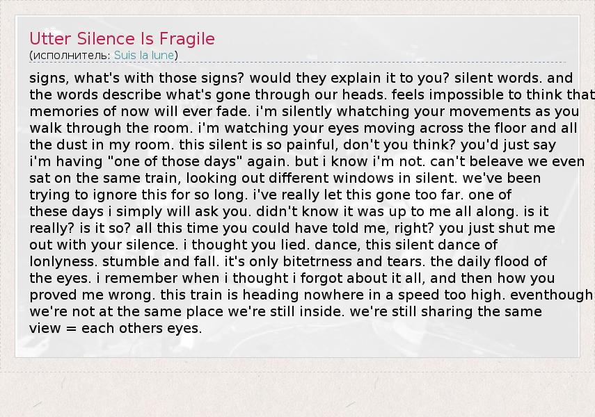 А как ты думаешь, о чем песня "Utter Silence Is Fragile" ?