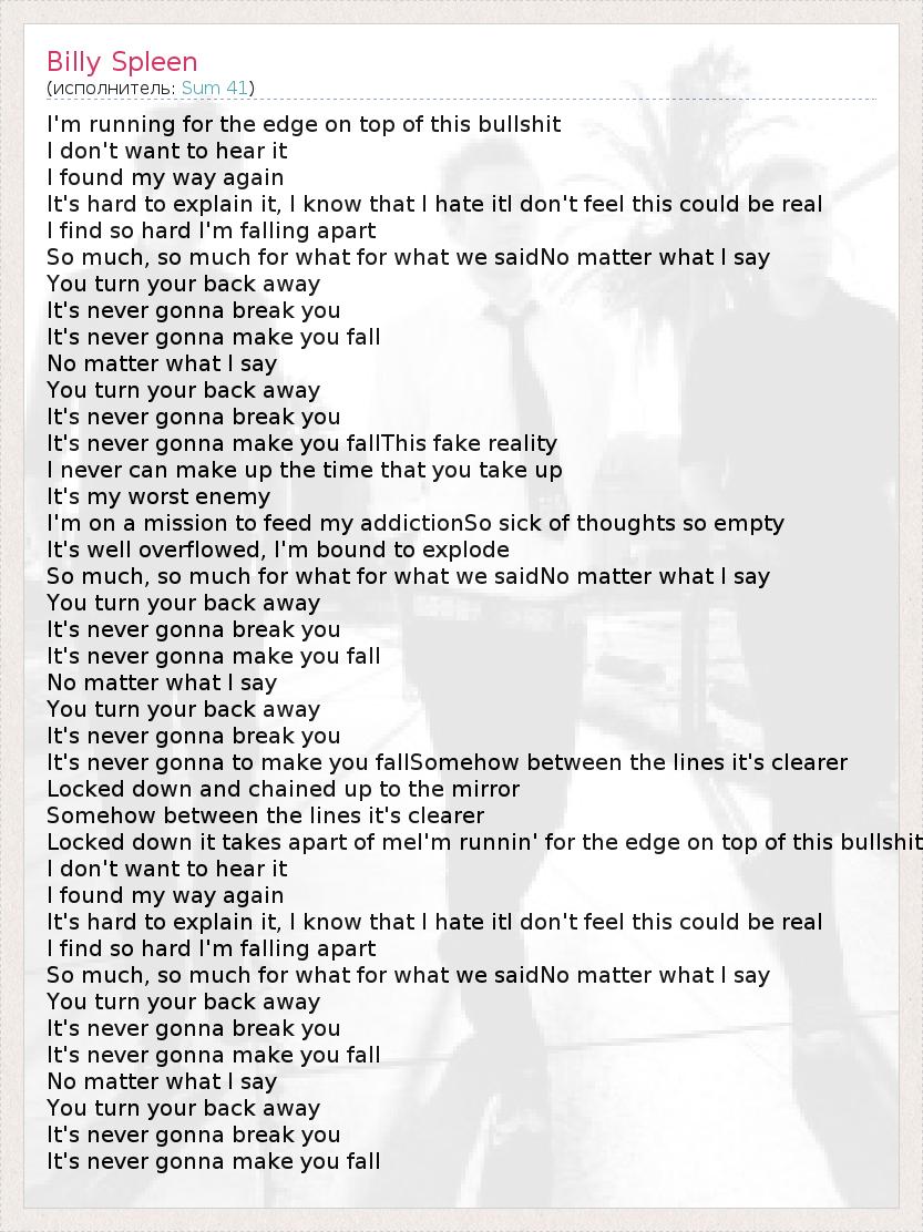 А как ты думаешь, о чем песня "Billy Spleen" ?