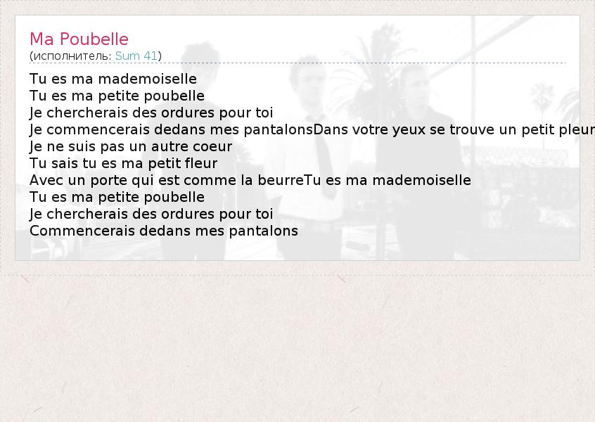 А как ты думаешь, о чем песня "Ma Poubelle" ?