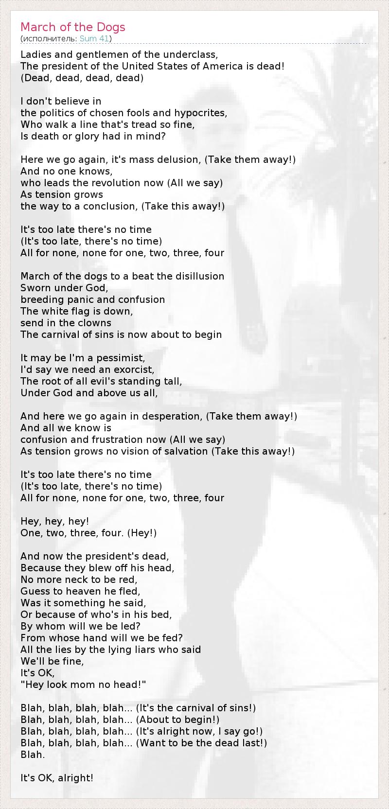 А как ты думаешь, о чем песня "March of the Dogs" ?