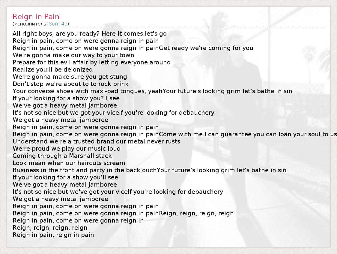 А как ты думаешь, о чем песня "Reign in Pain" ?