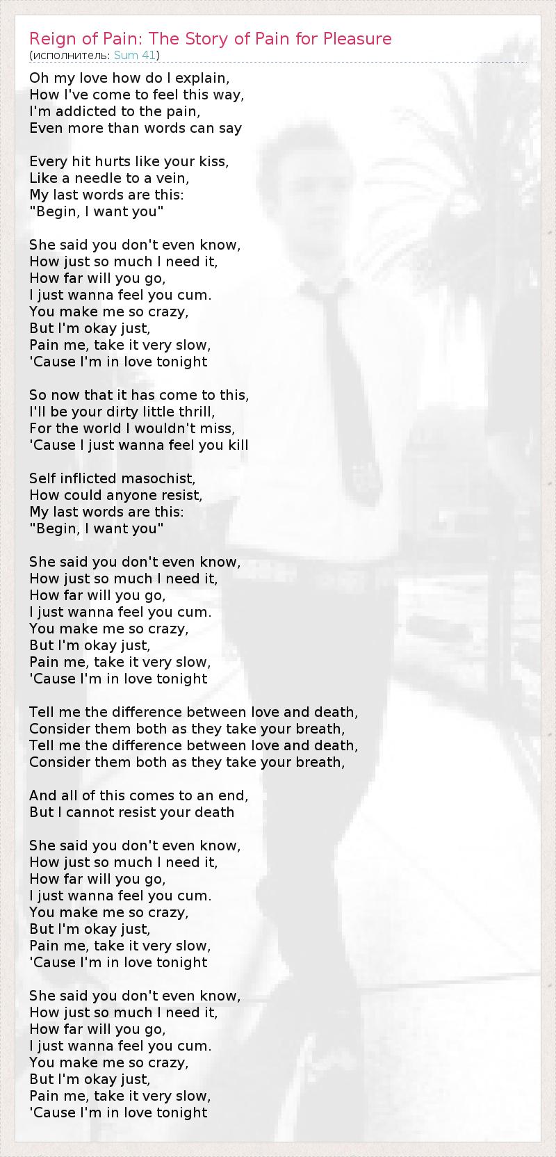 А как ты думаешь, о чем песня "Reign of Pain: The Story of Pain for Pleasure" ?