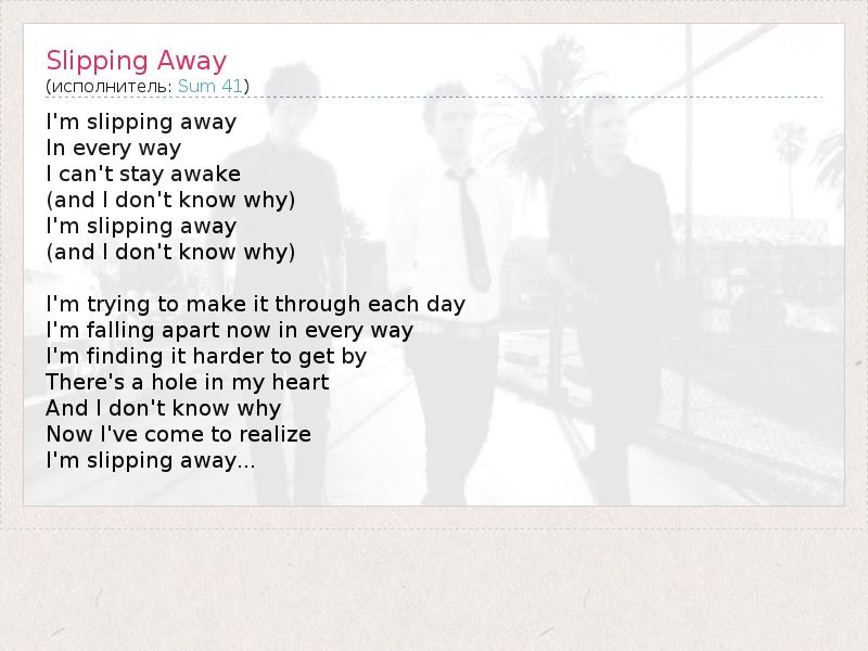 А как ты думаешь, о чем песня "Slipping Away" ?