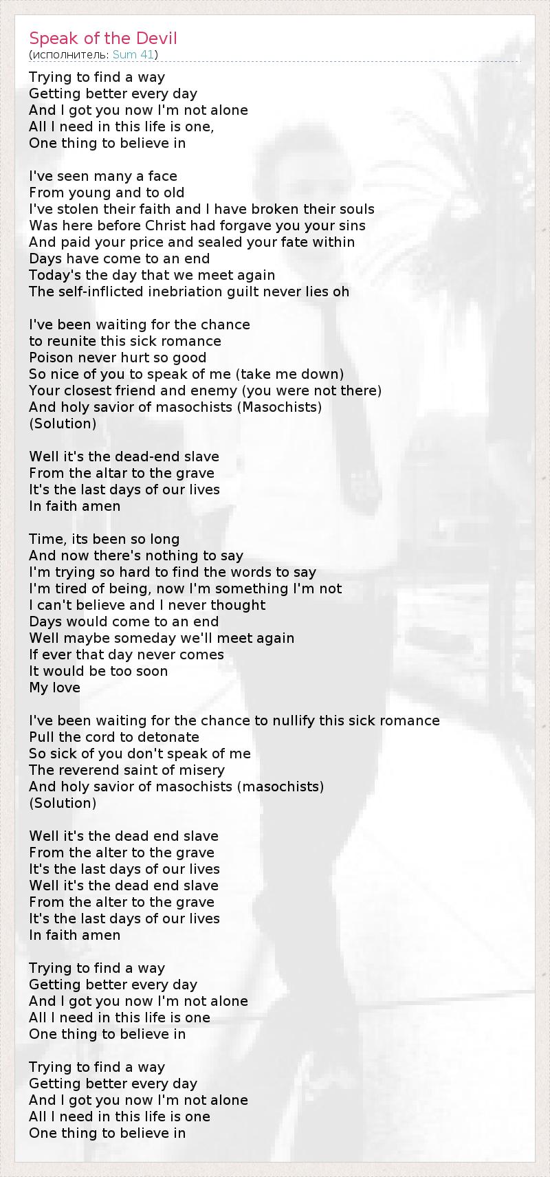 А как ты думаешь, о чем песня "Speak of the Devil" ?