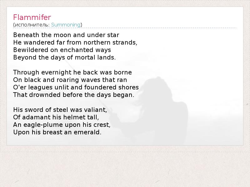 Это интересно:Summoning (англ. «Призывание») - дуэт из Австрии, исполняющий музыку в стиле эпичного атмосферного блэк метала. Стиль Summoning заметно отличается медленным темпом, активным использованием клавишных. Большая часть текстов группы посвящена миру Средиземья Дж. Р. Р. Толкина, а также основана на творчестве ещё одного писателя-фантаста - Майкла Джона Муркока.Первый альбом Lugburz... продолжение